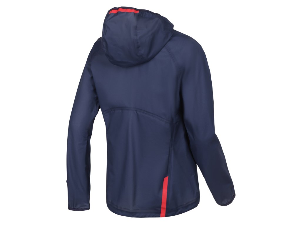 Die Jacke passt sich Ihren Kurven an und schränkt Sie in Ihrer Bewegung nicht ein. Eine große Tasche, die mit einem wasserdichten Reißverschluss gesichert ist, bietet Platz für alle wichtigen Dinge. Dank der reflektierenden Elemente an der Kapuze und am Rücken werden Sie auch bei schlechtem Wetter gesehen. Die Kapuze mit einseitigem Kordelzug im Rücken fixiert auch die eingepackte Jacke in der Kapuze. Lange Ärmel mit Daumenlöchern schützen auch die Handrücken. Eine praktische Öffnung am linken Ärmel, die mit einem wasserdichten Reißverschluss geschlossen wird, dient dem besseren Zugriff auf die Uhr.