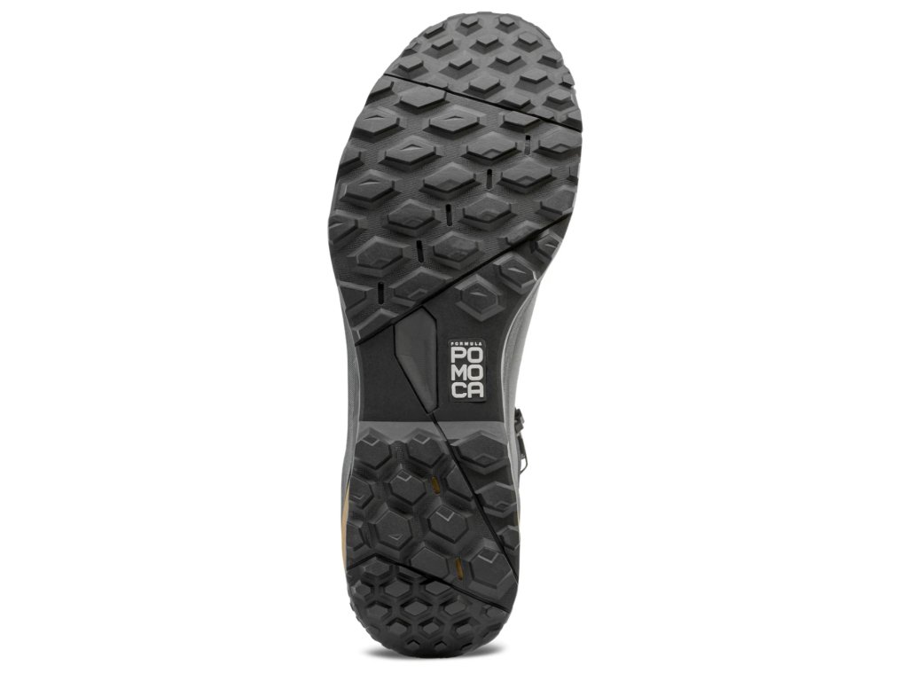 Der Schuh ist mit einer Pomoca Alpine Trekker-Außensohle ausgestattet, die dank Gummistollen und einem durchgehenden thermoplastischen Rahmen für verbesserte Flexibilität und Rebound hervorragende Traktion bietet. Das Salewa 3F-System mit Kevlar-Kabeln sorgt für einen festen Knöchelsitz und Stabilität im Mittelfußbereich. Die bis zu den Zehen reichende Kletterschnürung ermöglicht eine präzise Anpassung für optimalen Komfort.
