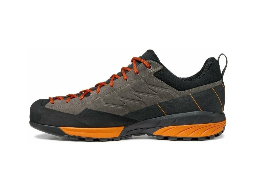 Das Obermaterial des Schuhs besteht aus wasserabweisend behandeltem Veloursleder und ist mit einem Vordergummi ausgestattet. Das macht den Schuh sehr gut wasserdicht. Der Vorteil ist die Zehenschnürung, die auf dem bereits legendären SCARPA Zen Modell basiert, und die damit verbundene perfekte Anpassung des Schuhs an den Fuß.