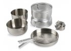 Kochset von Primus, das einen Brenner mit Luftzug, zwei Töpfe und eine Pfanne in einem Paket vereint.